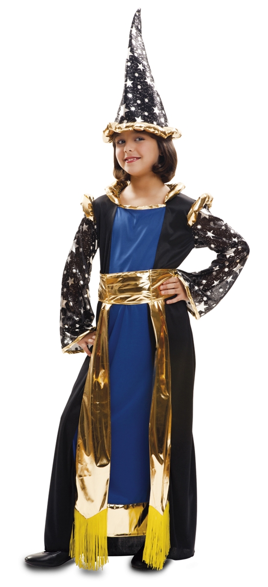 - Kostým doplňuje černý klobouk se zlatým okrajem a stříbrnými hvězdičkami.