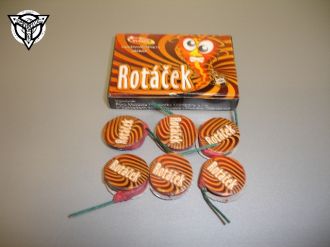 Dětská Pyrotechnika ROTÁČEK 6ks Balení obsahuje 6 kusů rotáčků, které se po zapálení točí po zemi a vydávají různé barvy. Třída nebezpečí: 1. Kat - prodej od 15 let Počet kusů: 6 Efekt: rotace Barevnost efektů: různobarevná Bezpečnostní pokyny Neprodejné po kusech. Určeno pro venkovní použití. Položte jednotlivě na zem, zapalte konec zápalnice a vzdalte se do bezpečnostní zóny (nejméně 1 metr). Pokud nastane selhání funkce výrobku, počkejte 30 minut a poté ponořte výrobek do nádoby s vodou.