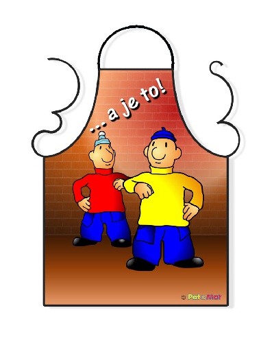 Žertovná kuchařská zástěra Pat a Mat je velmi pěkná klasická zástěra s motivem ze známé a pohádky pro děti i dospělé A je to... Zástěra je určena pro všechny kuchaře a kuchařky, kteří mají smysl pro humor a při práci v kuchyni se občas chovají tak, jak tato povedená dvojice. Zástěra je od českého dodavatele.