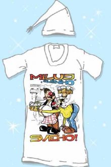 Noční košile s čepičkou - Miluj bližního svého Dárek pro manžela, tatínka nebo kamaráda. Tato originální noční košile s čepičkou zaujme každého na první pohled svým vtipným obrázkem. Pokud zrovna nespíte po návratu z hospody v tom v čem jste se vrátili, převlečte se do této pohodlnější košile, s vtipným obrázkem hospodského a bude seVám v ní krádně usínat. Lze použít nejen na noc - spaní, ale i pro všchny chvíle klidu a odpočinku. Velikost volte raději větší, aby při spaní nic neškrtilo. Tato noční košile je vyrobena ze 100% bavlny, gramáž 180 g/m2, krátký rukáv.