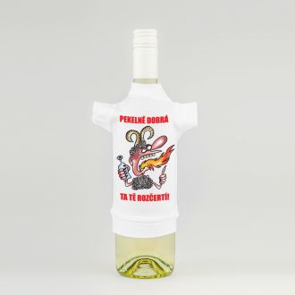Tričko na lahev " Pekelně dobrá, ta tě rozčertí" pro oslavence. Darujte lahev dobrého moku a oblečte ji do humorného trička. Tričko určitě udělá radost každému oslavenci a zároveň zabrání případnému samovolnému ukápnutí. Tričko bude mít obdarovaný na památku .