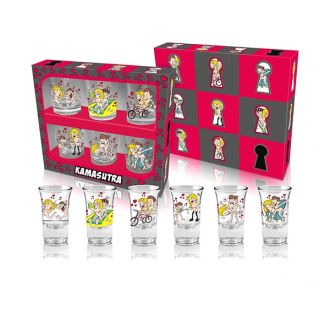 Váš kamarád slaví narozeniny a přemýšlíte, čím byste mu udělali radost. Darujte mu tyto humorné panáky - Kamasutra, které jsou potištěny vtipnými obrázky erotických poloh z Kamasutry. Tyto panáky Vás třeba dokonce mohou i inspirovat v nových sexuálních hrátkách. Stylové skleněné panáky udělají rozhodně radost. Panáky jsou ideální také na párty, podávejte svým hostům alkohol v těchto jedinečných panácích. Panáky - Kamasutra jsou originální dárek k narozeninám. Materiál: sklo 6 ks Rozměr balení: 16,5 x 15 x 5 cm Objem: 0,035 l