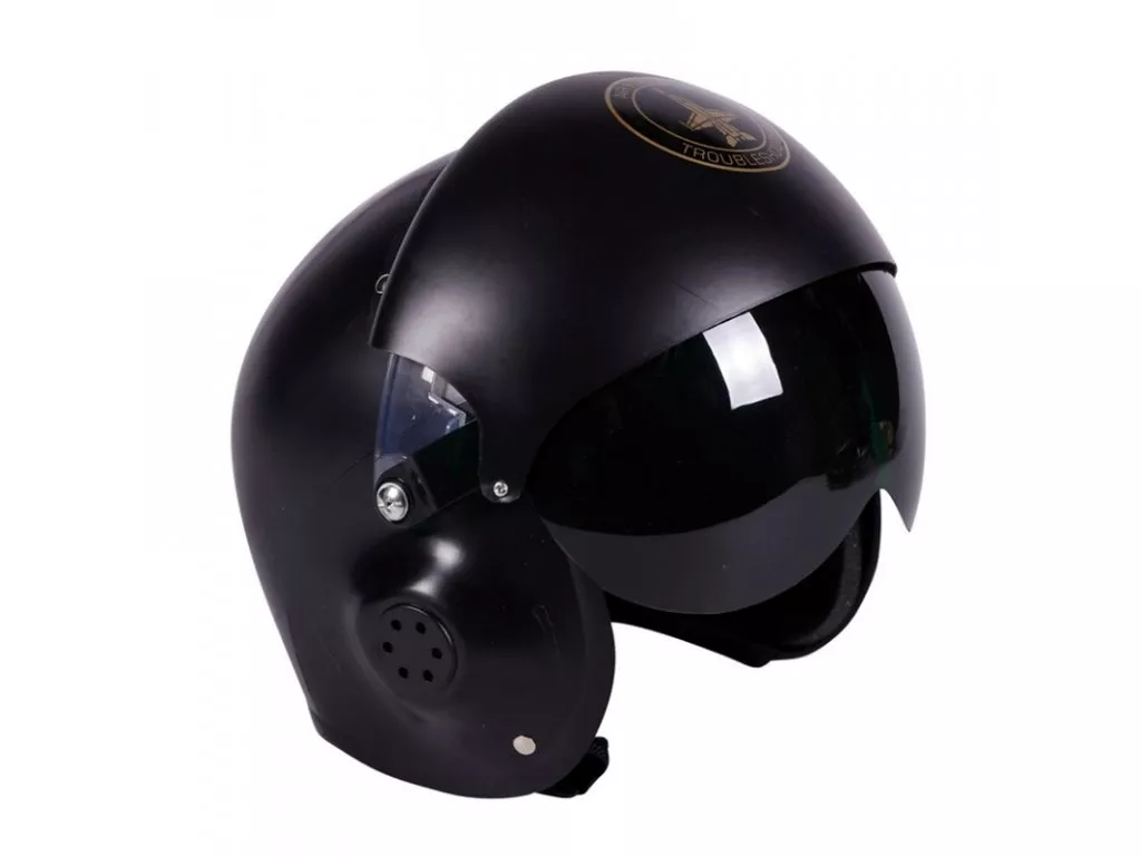Dospělá helma pro pilota s průhledným krytem na oči (případně se dá sesunout i zelený kryt) velká 25 cm.