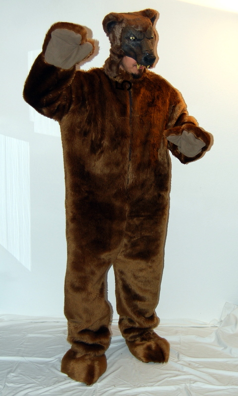 Hnědý overal - kostým s maskou - čepicí medvěda.