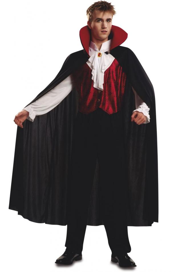 Součástí kostýmu je bílá košile s dlouhými rukávy a našitou červenou vestou s černými ornamenty. U krku je bílé fiží se zlatou sponou s červeným kamenem. Vesta je zdobena knoflíky a rukávy malým volánem u zápěstí. Černé kalhoty, dlouhý černý plášť s velkým stojacím černočerveným límcem.
