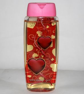 Opravdový sprchový gel s obrázky srdíček je krásný dárek k narozeninám nebo valentýnu pro svojí drahou polovičku.