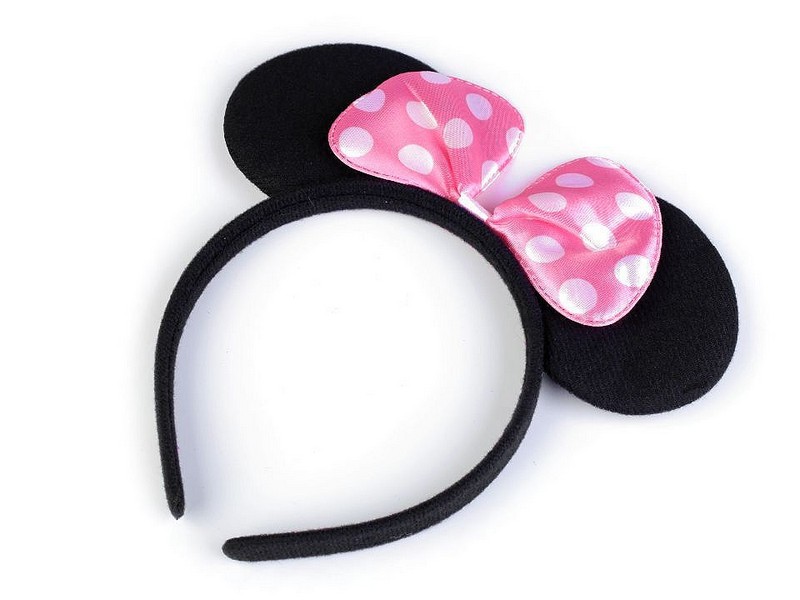 - Čelenku zdobí růžová puntíkovaná mašle jako stvořená pro Minnie.